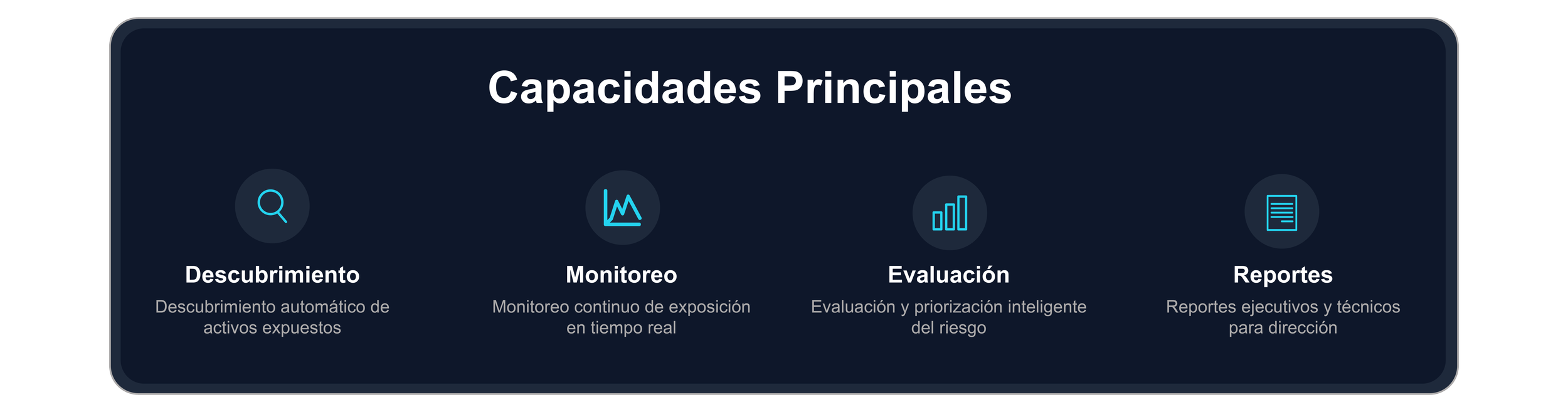 Identifica activos expuestos, evalúa configuraciones y entrega una visión consolidada del riesgo digital de la organización.