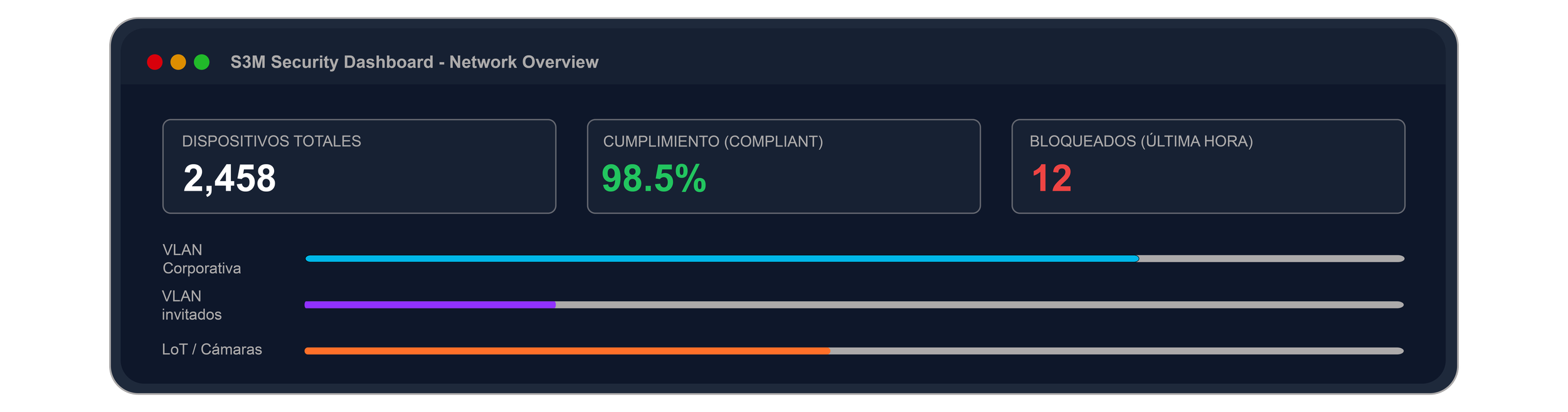 Control de Acceso a la Red (NAC) completo de S3M Security. Visibilidad total de cada dispositivo y cada usuario, en todo momento.